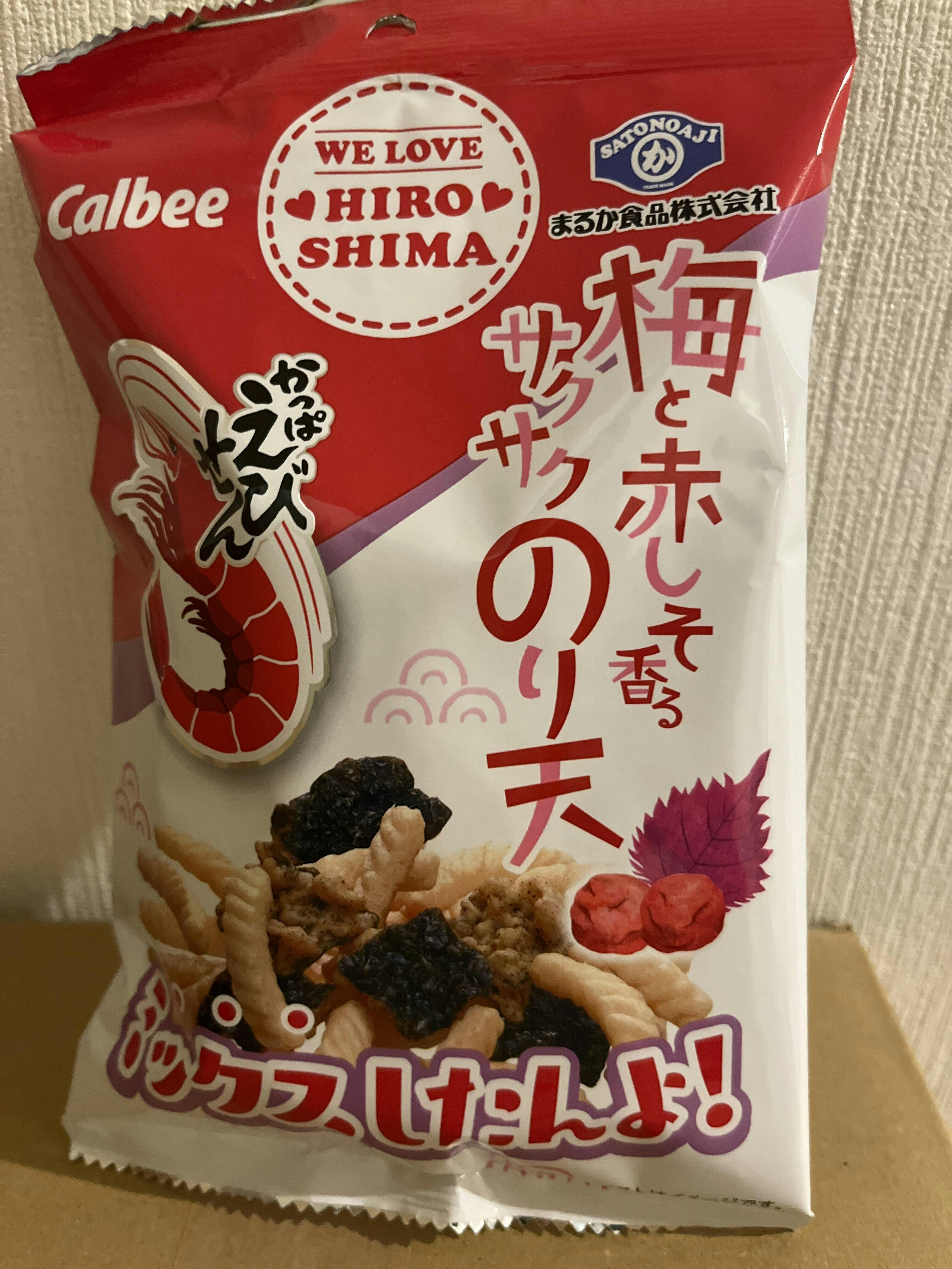 原材料 かっぱえびせん原材料:小麦粉、植物油、でん粉、えび、砂糖、食塩/膨脹剤、調味料(アミノ酸等)、甘味料(甘草) 梅と赤しそ香るサクサクのり天原材料:小麦粉、植物油、のり、でん粉、梅しそシーズニング、食塩、砂糖、いか、卵白、あおさ/調味料(アミノ酸等)、酸味料、甘味料(甘草、ステビア)、酸化防止剤(V.C)、香辛料抽出物、(一部に小麦・卵・いかを含む)